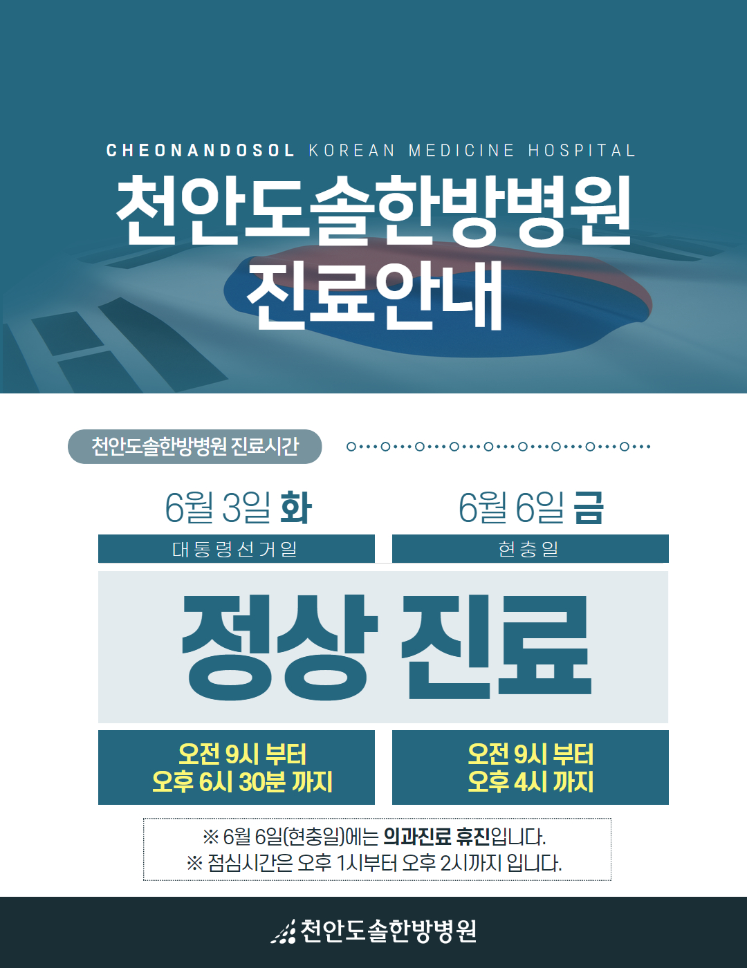 ※ 6월6일(금/현충일)에는 의과 휴진입니다.