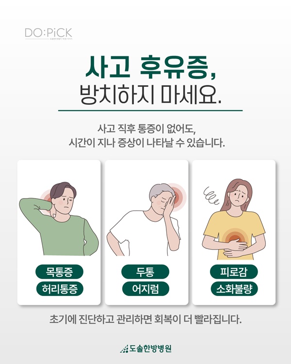 예기치 못한 교통사고를 겪으면 충격의 크기와 관계없이 몸속 근육과 인대, 신경이 긴장하게 됩니다.
