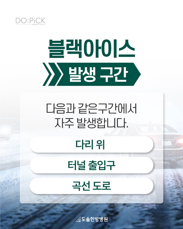 블랙아이스 구간에서는 순간적인 조작이 사고로 이어질 수 있습니다.